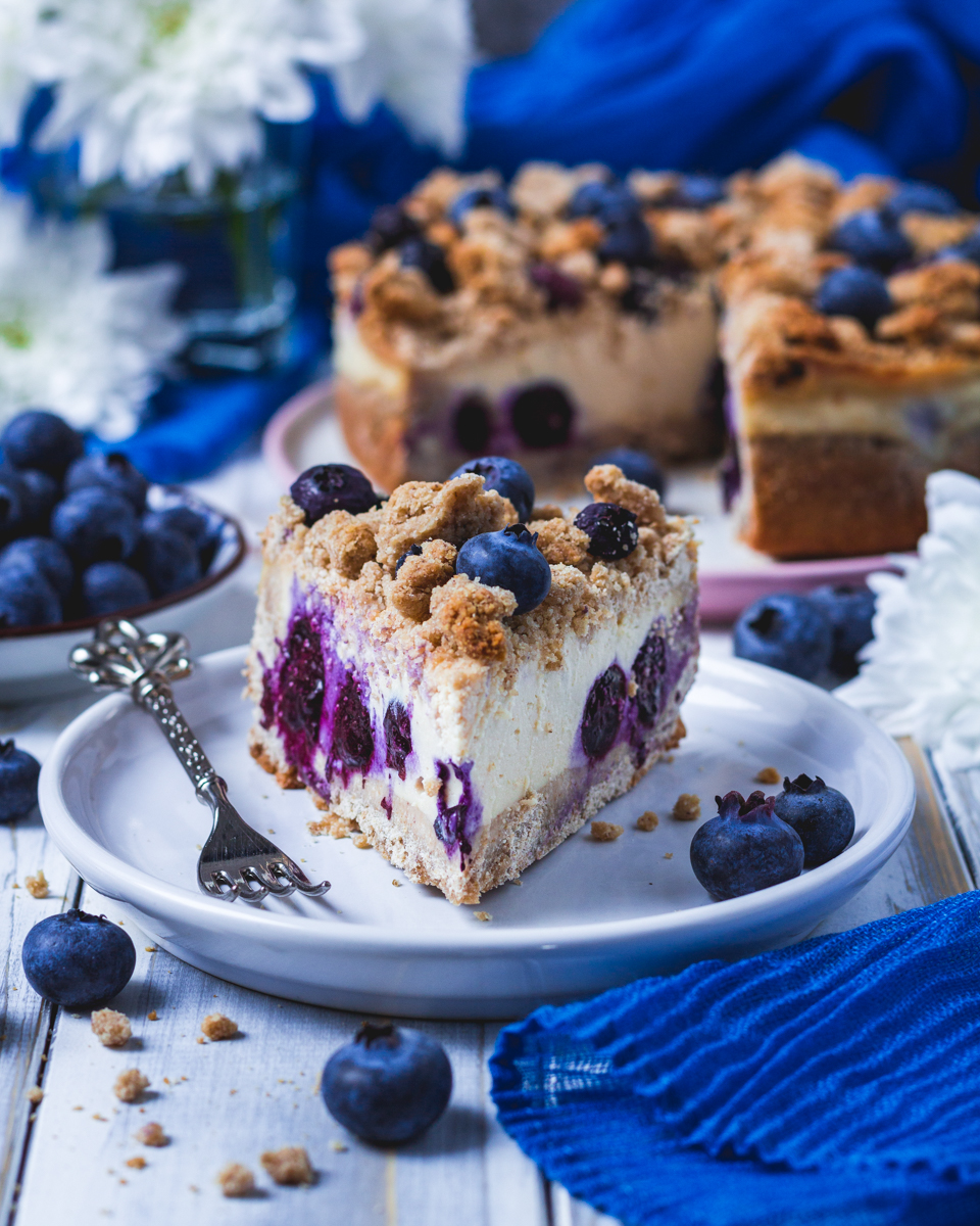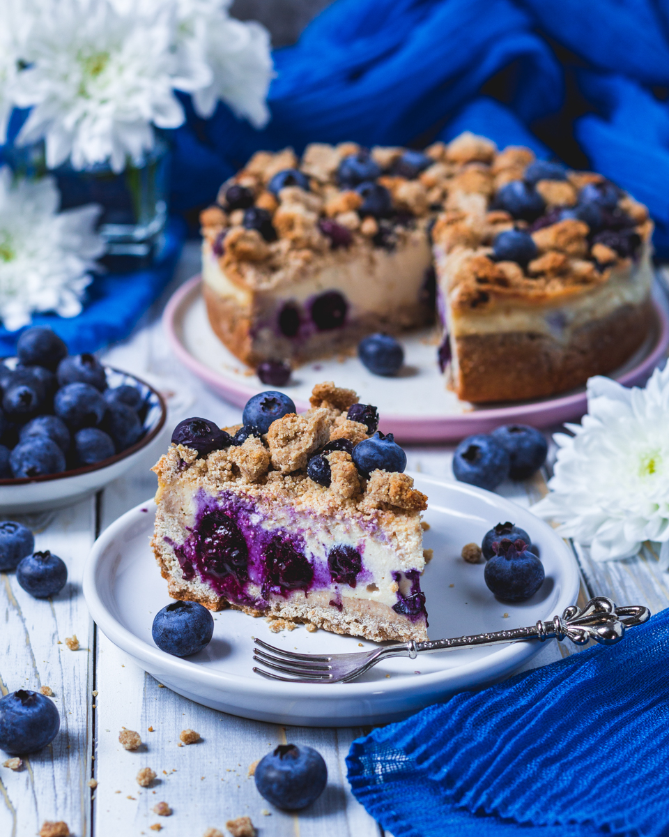 Blaubeer-Käsekuchen mit Streuseln – vegan