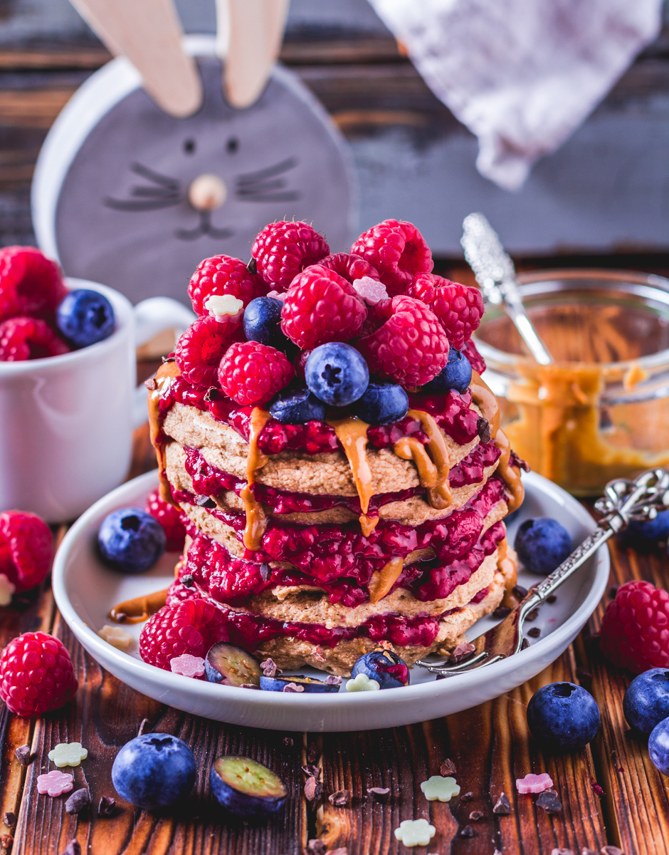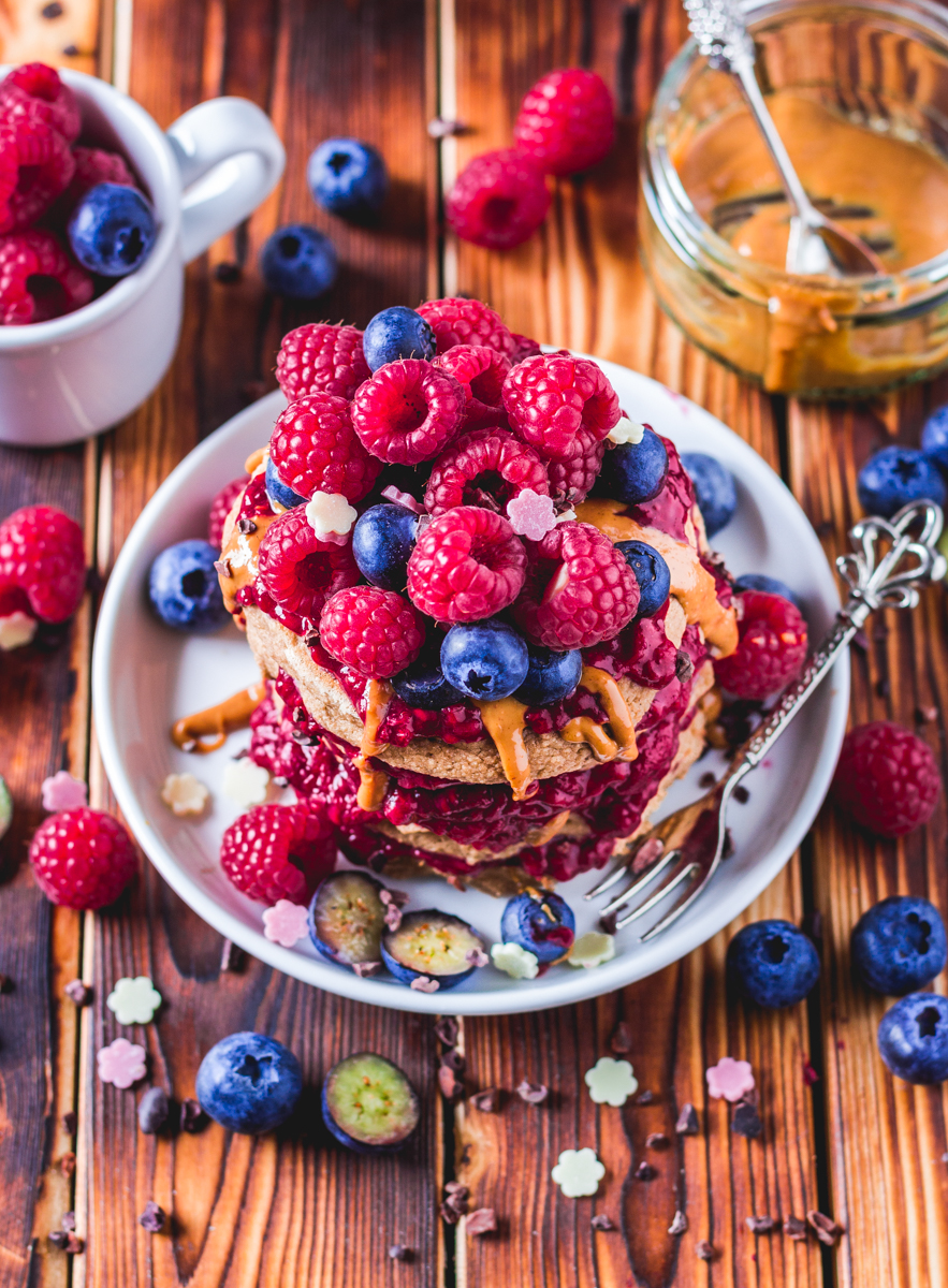 Nicht alle von uns vertragen Milchprodukte gleichermaßen gut, darum habe ich ein Pancake- Rezept entwickelt, welches einen hohen Proteinanteil hat und trotzdem absolut ohne Milchprodukte auskommt. Das geliebte Whey habe ich in diesem Fall durch ein veganes Protein ausgetauscht und pflanzliche Milch gehört sowieso zu meinem Standart- Repertoire ?