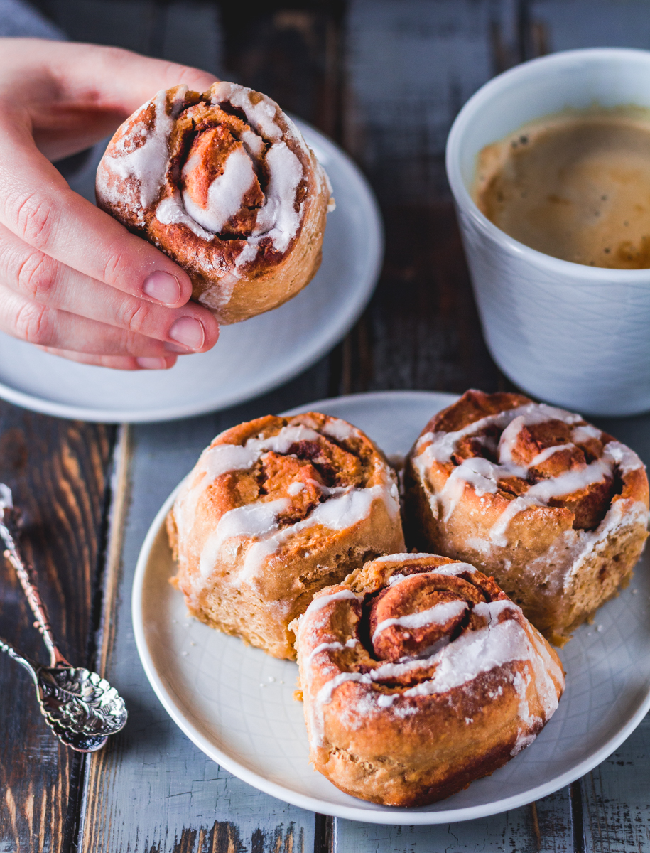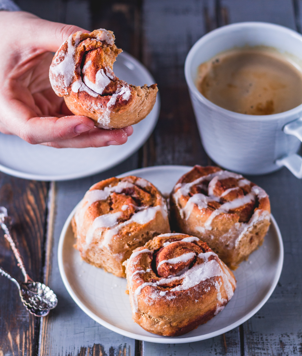 Nach langer langer Zeit habe ich es endlich mal geschafft, mich an gesunde Zimtschnecken heran zu wagen ? Normalerweise werden sie mit Hefe gebacken und der Teig muss einige Zeit ruhen, bis er sich vergrößert hat. Dazu habe ich selten Lust, also habe ich an einer Hefefreien Variante gebastelt, welche dazu noch vegan ist und etwas Protein enthält. Tatsächlich ist mir das Rezept sofort geglückt und ich bin absolut davon begeistert ?